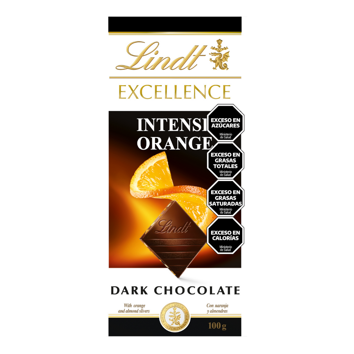 Lindt Excellence Naranja es una tableta de intenso y exquisito chocolate elaborado con los mejores ingredientes por nuestros Maestros Chocolateros, expertos en chocolates y bombones de alta calidad. Una mezcla perfecta de fino chocolate negro que combina delicados trocitos de naranja dulce y crujientes láminas de almendra para crear una experiencia que satisface todos los sentidos y proporciona gran placer con su textura delicada y color profundo. Disfruta del agradable y crujiente chasquido al partir sus onzas en forma de diamante y extraordinariamente finas. Aprecia su pronunciado aroma antes de sumergirte finalmente en una intensa sinfonía de sabores de cacao puro mientras el chocolate negro Lindt se funde en la boca.
