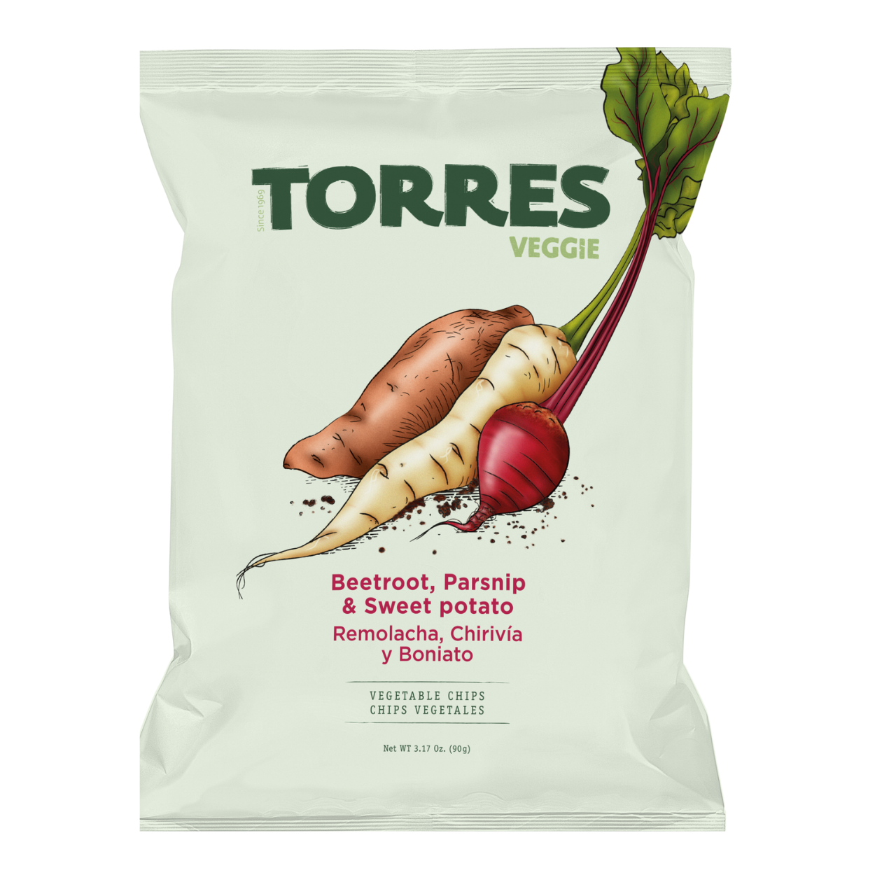 Elaboradas con una selección de vegetales naturales remolacha, batata y chirivía, las Chips Veggie Torres ofrecen una alternativa sabrosa y sofisticada a las papas fritas tradicionales. Su textura liviana y crujiente resalta el sabor dulce y terroso de cada hortaliza, potenciando un equilibrio perfecto entre lo natural y lo gourmet. Ideales para picar entre horas o acompañar aperitivos, estas chips españolas de 90 gramos combinan calidad, color y sabor en una experiencia crujiente y deliciosa.