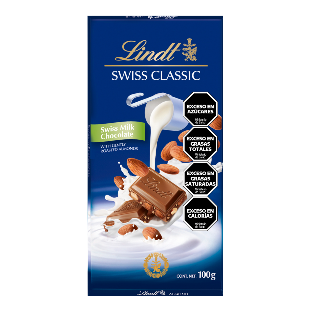 Chocolate Lindt Swiss Classic Tableta Milk Con Almendras 100 Gr.